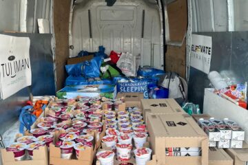 Nathan (VM4U volunteer), Sophie (VM4U volunteer), and Olga (The Feel Good Store volunteer), delivered gifts and food raised by VM4U as part of the St. Nicholas Project to the displaced orphanage in Zhuravno, Ukraine using the VM4U van. VM4U donations were used for van fuel and driver accommodation and project specific donations were used for food.
