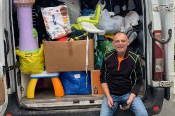 Nathan, using the VM4U van, collected donations raised by Roland, Team Muchendorf, and delivered them to Matusya, Vienna children’s aid and collection center. VM4U donations were used for van fuel.