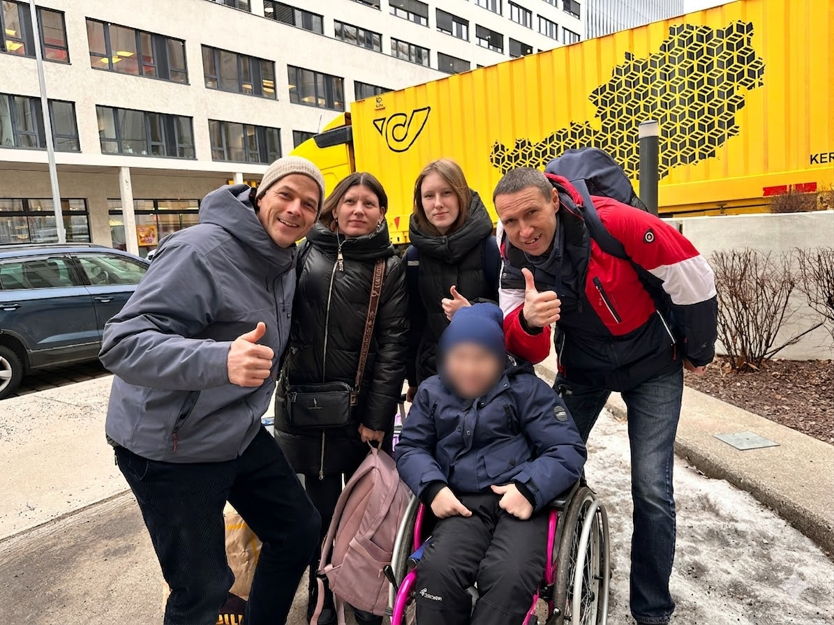 Jamie, using their personal vehicle, transported Olha and Oleksandr, their two children (with wheel chair), and personal belongings from Hostel Huttledorf (Vienna refugee center operated by Volkshilf) to Haus Erdberg (government sponsored dormitory operated by Red Cross). VM4U donations were used for fuel.