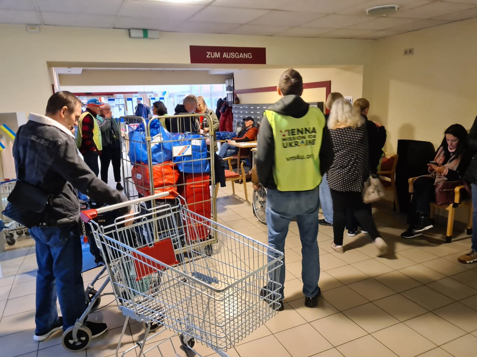 Thanks to David and Tanja Maier’s tireless dedication to field work, the 4/15 closure of the Haus Haidehof dormitory was detected. ~100 refugee tenants, who are mostly disabled, blind, amputee, wheel chair bound, and with serious medical concerns, were unable to move by the deadline and were at-risk of ending up on the street. VM4U organised a team led by Svetlana, Case Manager, who earlier this week met with the Haus Haidehof management from Samariterbund. Svetlana negotiated permission for VM4U support and then interviewed the ~100 refugee tenants to establish the needs. After the human and material resources were organised, Svetlana then marshalled ~50 volunteers to pack baggage, transport refugees, and deliver baggage from Haidehof to ~10 locations around Vienna over 48 hours. Svetlana also worked with counterparts from Fonds Soziales Wien, i.e. the Austrian government, to perform last minute placement of refugees without accommodation. All refugees and their belongings were successfully transferred to new accommodations except for 4 cases, including blind and disabled refugees, who were forced to stay at the Vienna Arrival Center (refugee center operated by Red Cross). The Social Work Hub sponsored the 500 IKEA bags, YOUkraine and VM4U provide medical supplies, and The Feel Good Store and VM4U supplied volunteers.