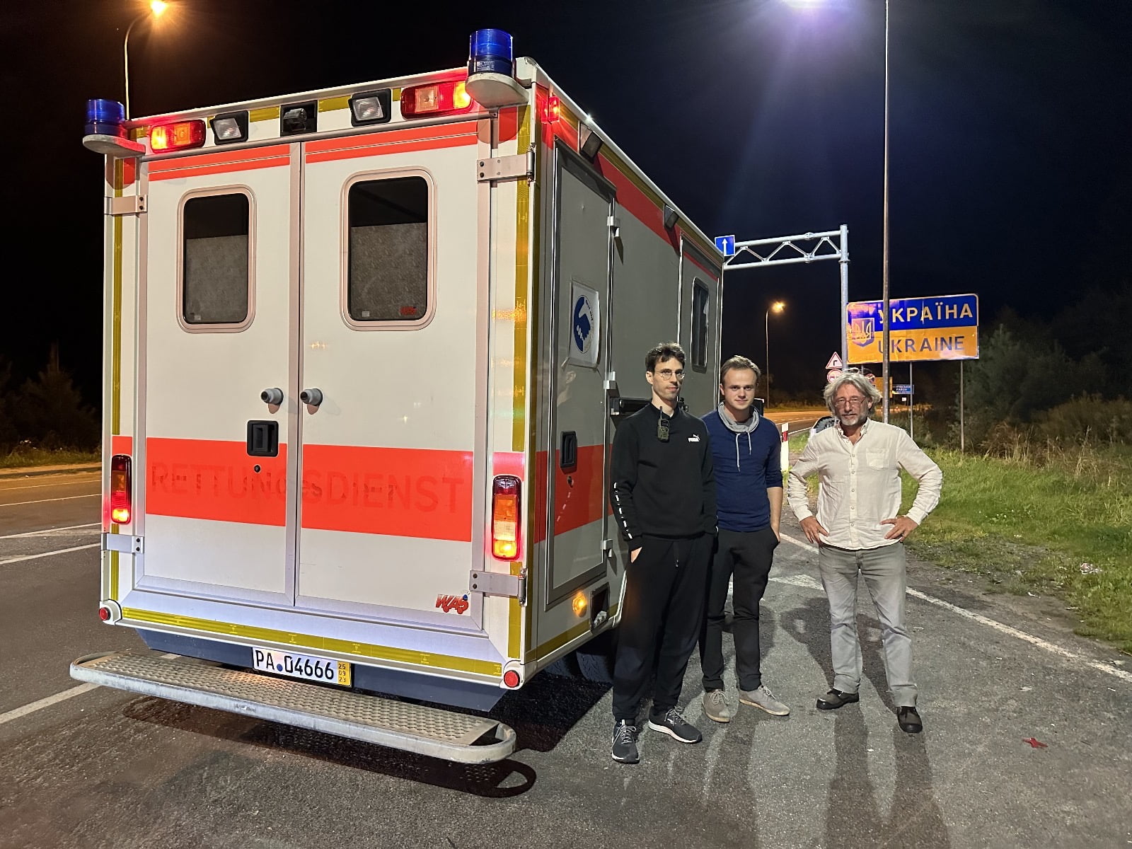 The 2008 Mercedes Sprinter 413 cdi ambulance raised by FAFH was delivered to the TacMed Ukraine organization in Kramatorsk on 9/28 by Thomas, Michael, Adam, and Markus (FAFH). Medical supplies raised by VM4U (with procurement support from YOUkraine) were delivered to TacMed Ukraine with the ambulance. A LifePak12 patient monitor is still needed for the ambulance with procurement underway. The TacMed Ukraine team anticipates that the ambulance will be used primarily for the long distance transport of patients in critical condition. Two news media outlets, DW and Puls24, covered the ambulance delivery; these reports are expected to air in the coming weeks. The ambulance is named Dymytro in honor of Dima, Ukrainian medic from Kharkiv. VM4U donations were used to purchase medical supplies, diesel, tolls, mechanical equipment for the ambulance, and driver accommodations during delivery.